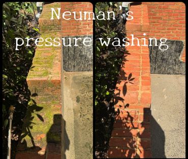 Before and after patio cleaning using a surface cleaner by Neuman’s Pressure Washing.